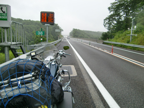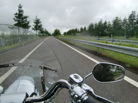 沼ノ端から日高富川までは日高自動車道を走ります 去年は快晴で鼻歌まで飛び出すほど気持ちよかったが、今年は大雨!しかも横風が強かった! 鼻歌どころか悲鳴が出そう・・・ でも、すれ違うライダーからピースサインもらって元気が出た! |