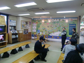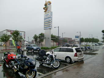 カッパの中までびしょ濡れの状態で凍えて感覚がなくなりそうになりながら、やっとの事で道の駅「樹海ロード日高」に到着! まずはカッパをすべて脱ぎ、雨水をたっぷり含んだレイングローブを絞る・・・ う〜・・・さぶいぃ〜・・・ |