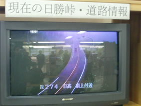 日勝峠の頂上の模様を道の駅にあるモニターでチェック あちゃぁ〜、霧が出てるよ こりゃあ、遠回りだけど占冠まで出て狩勝峠かトマム経由で高速道路かな? |