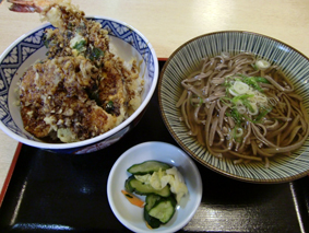 腹が減っては思考回路も働かぬ・・・ 中のそば屋で昼食です。 天丼セットを注文 天丼はたれが辛かった。でも完食! |