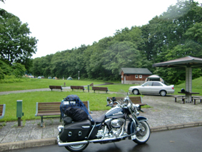 ナビのおかげで、全く迷うことなく16:10には上士幌航空公園キャンプ場に到着 雨がやんでいるうちに、急いでテントを立てちゃおう |