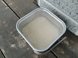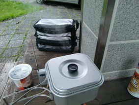 でも、手は休めない 腹減っているもので・・・ 十分に水分を吸った米に定量の水をはかって入れて炊き始めます。 炊きながら、ビールを飲んで待つ |