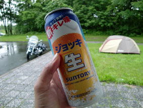 設営、米研ぎ、風呂、買い出し・・・ すべて終わって、これで一息入れられます。 まずは、これ!・・・でしょ |