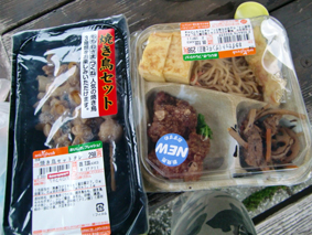今夜のメニューは?? って、いつもと変わらない「おかずセット」 でも、去年よりお総菜の種類が増えていたね。 セイコーマートもがんばっているんだ・・・ |