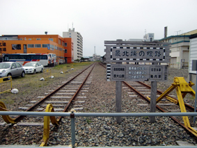 ナビの登録通りに進んでいきます 次は最北端の線路 まあ、ネタのために寄りました。変哲もない線路の端です。 駅前が工事中で、ちょっと迷ったけど |