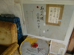 国道244号線を南下すると白いドラム缶で作ったポールが2本左にあります 入っていくと「越川温泉」という文字 ちょっと中をのぞくと・・・ |