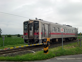 天気もだいぶ回復してきたので、もうちょっと足を伸ばすことに 踏切で1両電車に出くわすことなんか滅多のないので、思わずパチリ! |
