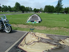乾いた荷物をローキンに積み込んで、出発準備ができたのが10:49 大阪からのご夫婦にお礼を言って、これから南下します! |