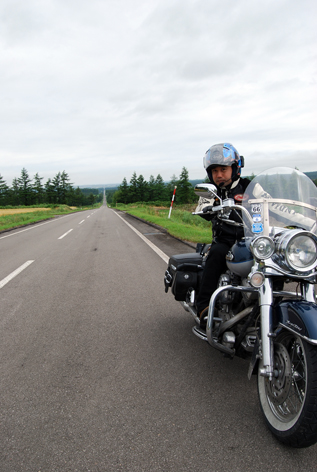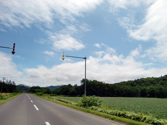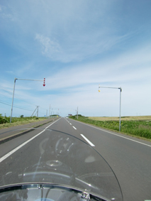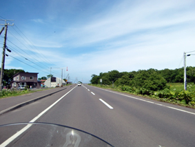 根室から多和平まで、延々と走り続ける! 同じ姿勢、同じスピードでだらだらと走っていると、首筋が凝っちゃって・・・! ナビから音楽聞いているからいいけど、そうじゃなかったら退屈で倒れそうです。 |