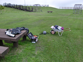 人気のキャンプ場だから、この日も6組ほどテントが張られていました。 一番高台にテントを設営! ○○は高いところが好きと言うが? |