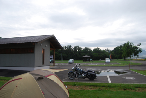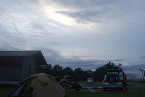 ご夫婦に留守をお願いして、Tシャツやテントが乾くまでちょろっと走りに行きました。 まだ雲に覆われているけど、晴れてきそうな予感 |