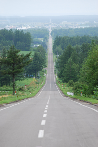 地平線、最後は海までずぅ〜っとつづくまっすぐな道!