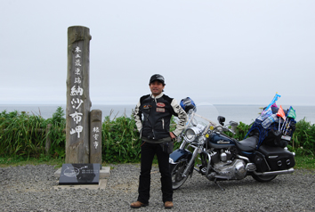 別海のGSから1時間半かかって納沙布岬到着 Tシャツ&革ジャンだけじゃ、寒すぎる! ここは深ジャリで重いローキンは足を取られそうになります。 |